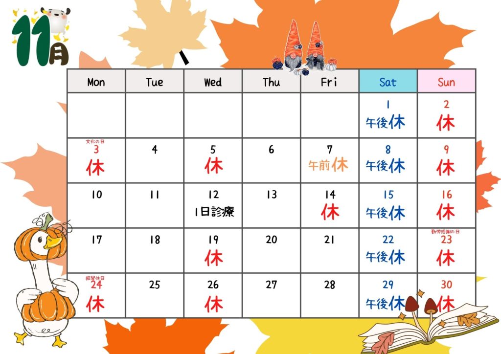 11月診療日のお知らせ