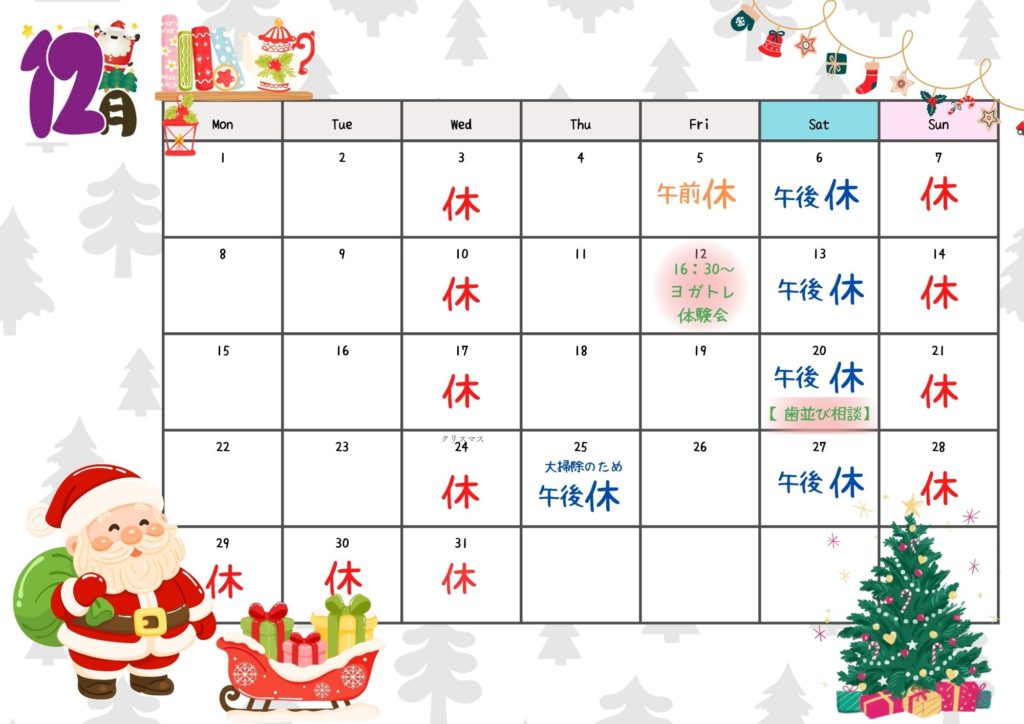 25日(木):今年はこの日の午後に大掃除を行うことになりましたので、午前のみ診療となります。