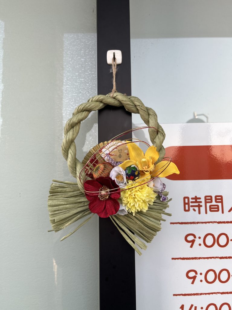 正面玄関には、毎年購入している「フラワーショップたまき」さんのしめ縄を飾らせていただきました🌿